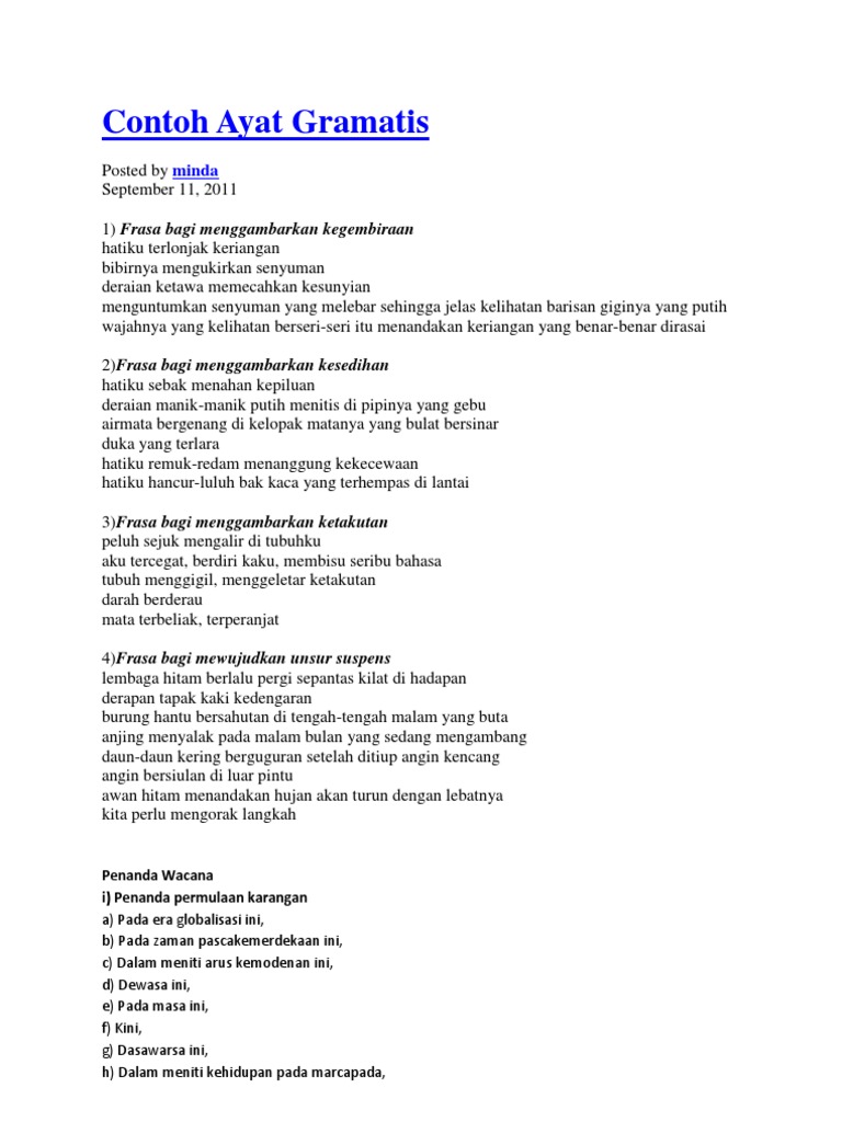 Contoh Ayat Penanda Wacana : Penanda wacana untuk ayat pertama setiap perenggan.. 3 contoh ayat tentang penanda wacana meskipun. Penanda wacana untuk ayat terakhir pendahuluan karangan. Penanda wacana merupakan perangkai ayat untuk menentukan perkaitan atau kesinambungan antara satu idea dengan satu idea yang lain dalam ayat. · kita dapat menyaksikan betapa… · kita seharusnya berterima kasih kepada pihak kerajaan kerana… · contoh yang ketara yang paling dekat dengan kita ialah. Penanda wacana hendaklah digunakan agar anda dapat menulis karangan yang perenggannya koheren dan kohesi.