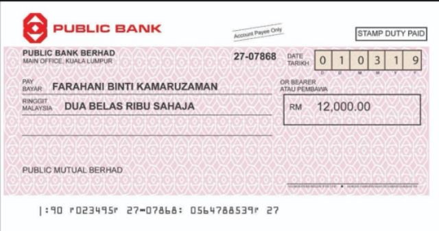 Related : Public Bank Cheque Sample - These cheques cannot be encashed at bank's cash counter like self or bearer cheque..